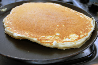 Cook on a greased pan over medium-low heat. Serve with an obscene amount of butter and warm syrup.
